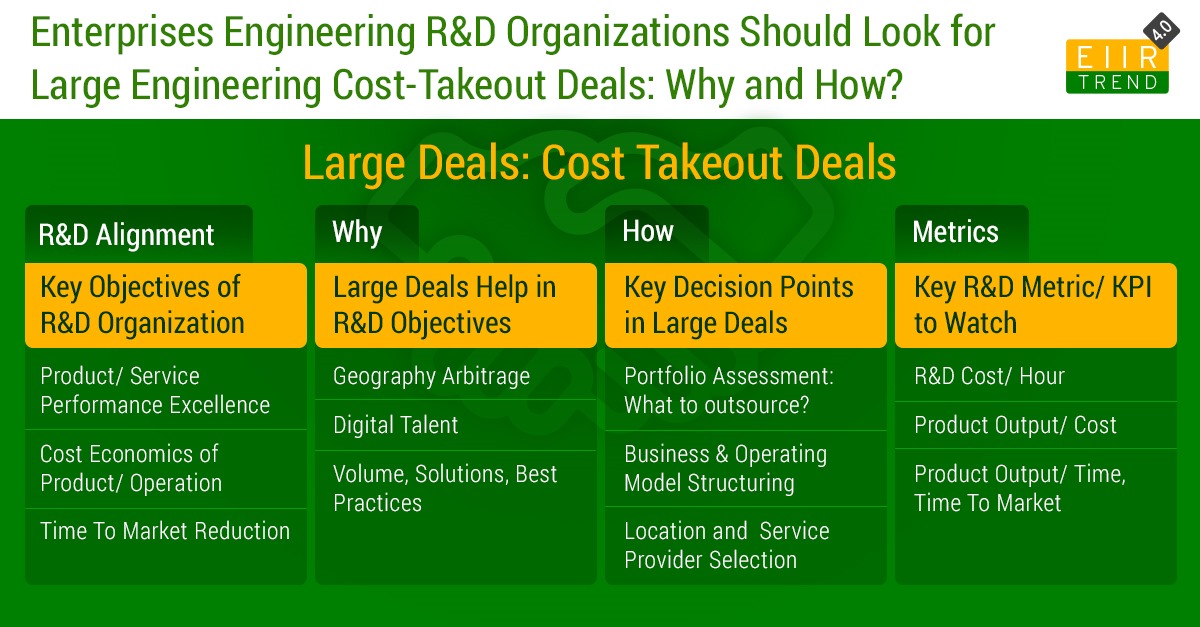The R&D organizations within engineering enterprises shoulder one of the world's most critical and demanding responsibilities. Their mandate is clear: to develop world-class products and services that drive their enterprise's success. Indeed, an enterprise's very existence hinges upon its ability to meet customer needs through these offerings, presenting a substantial opportunity for R&D. However, this pursuit is not without its challenges, as R&D departments grapple with various constraints. In this context, embracing large engineering cost take-out deals can assist enterprises in capitalizing on this opportunity while navigating the associated challenges.